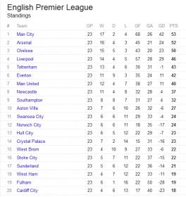 Barclays Premier League Standings