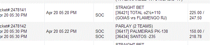 Flamengo vs. Goiás (20/04/2014): Flamengo -0.25 (3 to win 2.578)