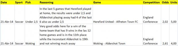 Bets for the Weekend...