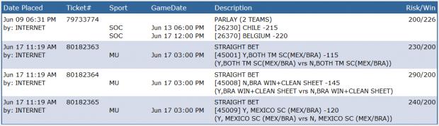 #1Brazil/Mexico both teams to score...even money....great value.Tags: None -