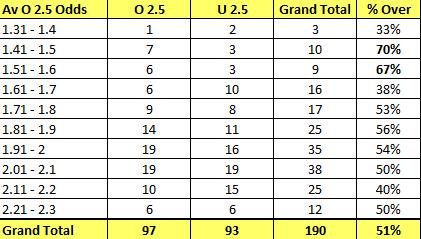 Whilst the o/u is reasonably well split at 51/49 its clear certain refs have a bigger influence on total goals than you would expect!