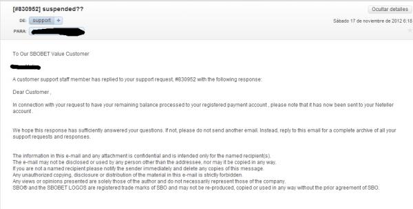 Yesterday I see one e-mail from sbobet warning me that my account was all by locked and could only access it to get the money, I sent another e-mail asking what is the reason, far from answering my question, sent the money directly to my account.