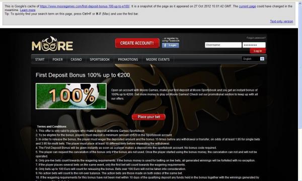 Hello, i have opened an account with mooregames 9 days back, i have made a deposit of 200 euros and received a bonus of 200 into my account. i had 10 days to clear this bonus and 6000 euros in bets in order to clear this bonus. Well the problem when i have asked them how much do i need to bet, they said 1600, and today they said to me that i have placed more than 100 euros/bet and according to their rule nr 8 Only bets up to 100 Euro will count for releasing the bonus. Bets over 100 Euro will not be taken into consideration and all generated winnings will be forfeited with no exception.