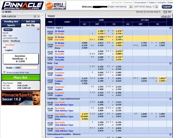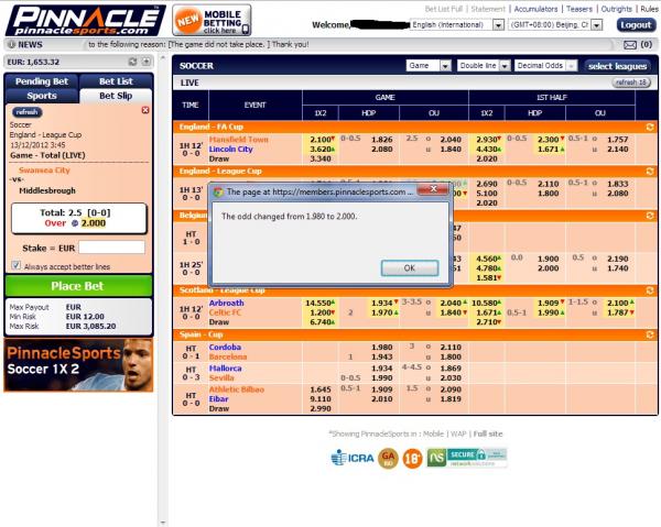 #11Originally posted by benji2501But i have one very important question: with that asian platform, does it remain possible, thanks to cursors, to change "handicap/spreads" and "totals". Because that's makes Pinnacle so different and interesting, so is it possible with asian Platform (i know it's impossible, not proposed for example on SBOBET) ?Originally posted by allin1The resemblance with sbobet is staggering. I think I like it better then the classic pinny but it would have to have the drop down menu with AH lines in order to be really good.
