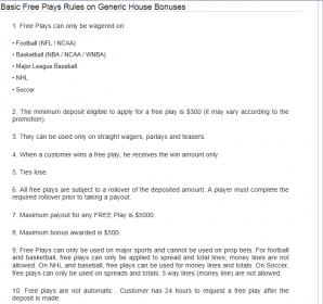 #8I know one thing...I will be depositing today to take advantage of the 100% freeplay. Can't beat 100% free play from an A+ book compared to the %100 offered by the risky C & D books. DSI has 2-payout options that the C/D books will never offer which really attracts me. Plus the fact that you can use your 300 in free play in up to ,8-team parlays and if you happen to hit a Dime on a parlay they only make you roll 20x deposit=6k. Several weeks ago I got 100% free play from betmania and they make you roll deposit + free play winnings. I ended up hitting parlays under free play in the amount of 1200