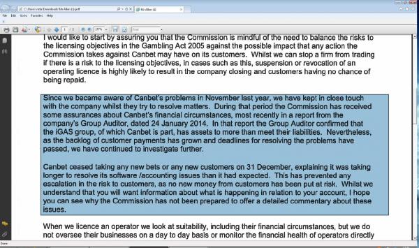 #286I didn't know for that, but interesting story with happy end. I don't know rules of Malta gambling commission, but UK Gambling commission clearly stated that they are not responsible for paying in case that bookmaker not pay customers.Originally posted by GuybrushTThat's the problem. If Canbet gets away with that without repercussions, then every bookie can do the same in case the business starts to go downstairs. Where is the logic? They can operate a risk free job? If things go well they earn, if things go bad, no problem, customers will pay.