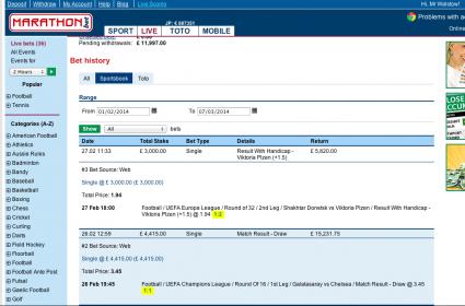 UK member, made a Marathonbet account a few weeks ago after seeing they sponsor are team in the EPL so assume they must be legit. Made a couple of bets, champions league and europa league, not betting on fixed games in Albanian second division like some people with disputes on this board. See screen grabs.