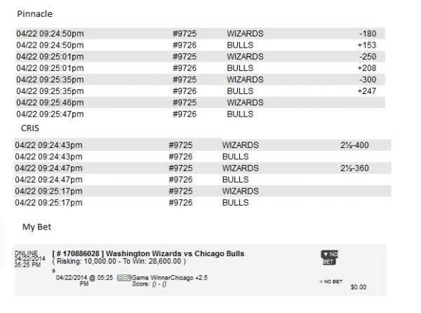 • Pinnacle later opened a moneyline that moved 120 cents in 45 seconds. Did Pinnacle cancel the bets on Wizards ML at -180 because that price moved to -300?
