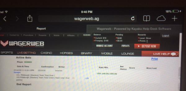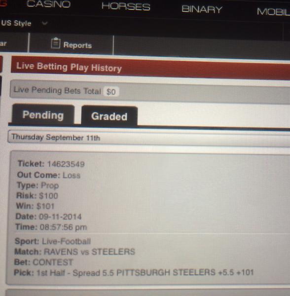 Ok so I just happened to place a bet on wagerweb it was a live bet on steelers +5.5 first half and it was graded as a loss prior to the first half even ending... I mean like 5 minutes prior.