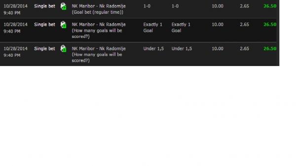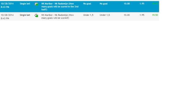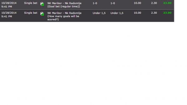 I placed a bet at Smartlivesport on event "Maribor - Radomolje" under 1.5 @ 2.60