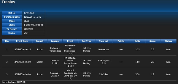 My first withdrawal from 10bet.com for AUD $31900 , i won on a 3 leg multi