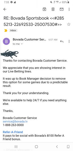 Thanks for contacting Bovada Customer Service.