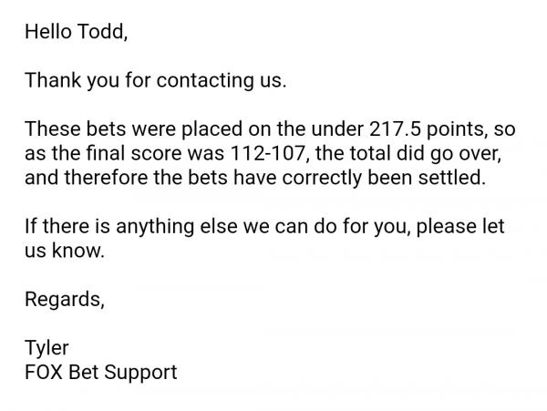 Support is saying I wagered on a 217.5 line and my wagers are losers. This is clearly an error on their part which should have been rectified with one contact but they still have not paid me!!!