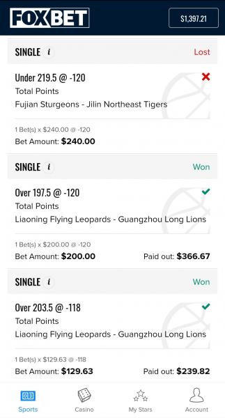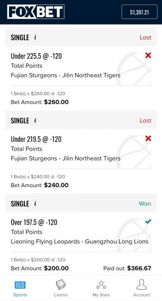 FOXBET was offering live wagering on Chinese Basketbal last night. I played live in two games on the total. They paid out the first game correctly, but they are now telling me they are not seeing what I see in the Fujian vs Jilin game.