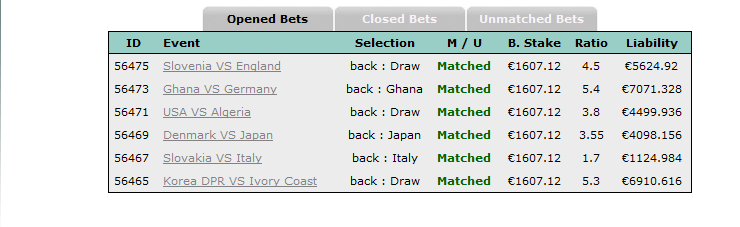 I clicked it wondering what it was about and suddenly my balance is zero (was 3083.88 Euro) and I have 6 matched bets for upcoming world cup games randomly selected... There is no way most of them are winners..