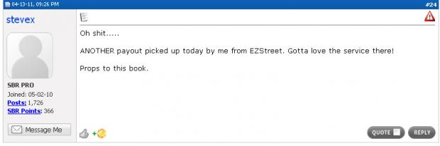 Easystreet is piece of shit book, total garbage . Nothing but lies from them and the rest of trash RX ,expert + the shills are running around left and right on 24 clock .