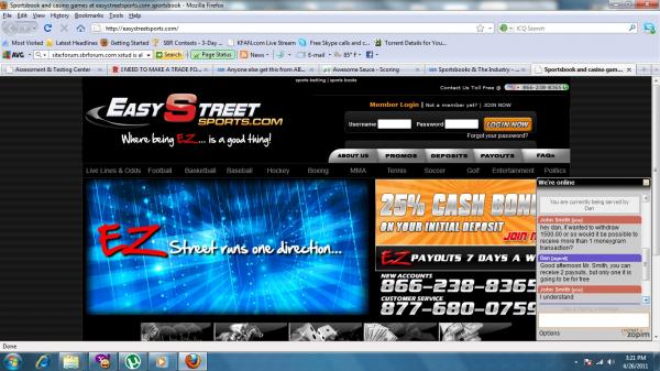 EasyStreetSports.com — Added Apr. 25, 2011 Added for failure to pay a winning video poker player and the feeble excuses not to. For the whole story, please see my page on the Easy Street Sports vs. Cory1111 dispute.