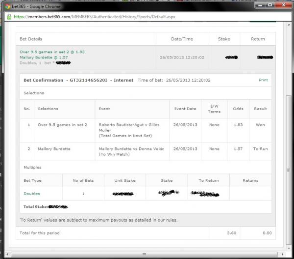 Burdette M. - Vekic D. 1 (1.63) Stake: 8/10