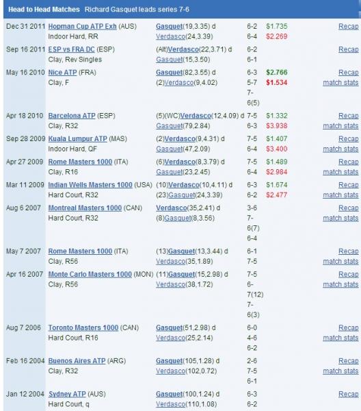 Verdasco should of been the favorite against Gulbis given his 3-1 head to head against him (4-1 now)Comment