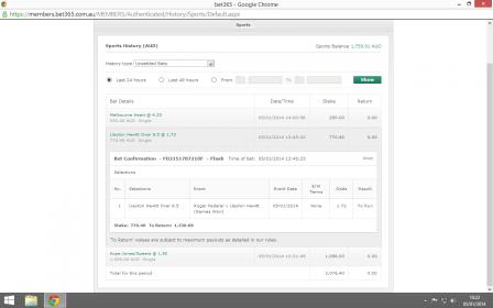 indeed congrats to those. As for myself, I needed fed to win to complete quite a nice parley...... Should remember to never bet against Lleyton in his own country lol