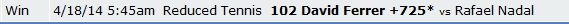 #1Ferrer +5.5 vs Nadal @2.00Tags: None -