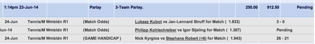 #5Going to parlay him with istomin -4. I think that is also another solid play todayComment -