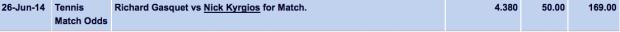Kyrgios over Gasquet