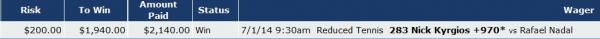 #74thanks for another big winner dlw u rok!Originally posted by dlweaverKyrgios ABSOLUTELY CAN win this. I'm telling you guys. He is prepared.Comment -
