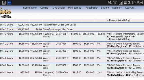 #75i wanna see a screen shot of this 2000 bet on reduced juice at 5dimes, because i know how they work and i know they aren't taking a 2000 bet on reduced juice no way, i had my limits raised from 500 to 1000 to bet on reduced and i doubt very much tony would allow 2000 on reduced so unless u broke it up into 2 or 4 bets not likely u got 2000 at those oddsComment -