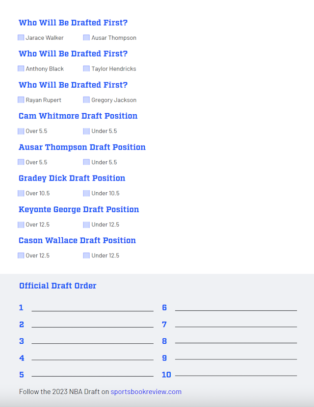 Download Page 1 and Page 2 of our FREE printable NBA Draft prop bet sheet here!
